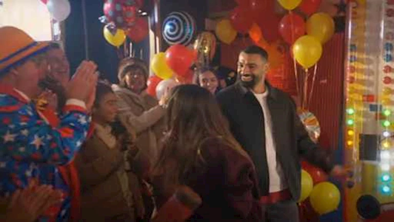 وفي أول لقطات شوبير في الإعلان، يظهر وهو يتصدر لركلة جزاء، وتتواجد والدته في المدرجات لتشجيعه، تمكن من التصدي لها بالفعل، عقب نجاحه في التصدي لركلة الجزاء، يذهب إلى والدته في المدرجات ويقبل يديها ويحتفل معها.