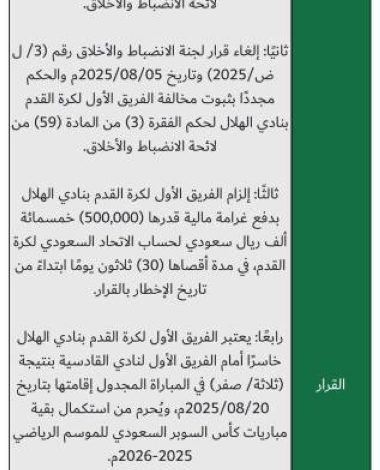 قبل مواجهة النصر والأهلي بساعات.. لجنة الاستئناف تؤكد أحقية القادسية بلعب نهائي السوبر
