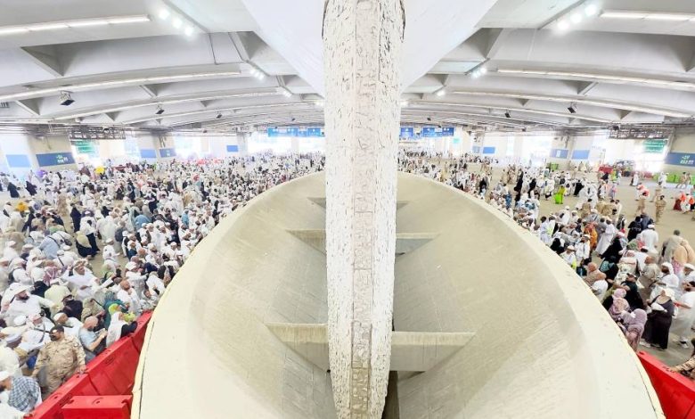 الحجاج يرمون الجمرات في أول أيام التشريق