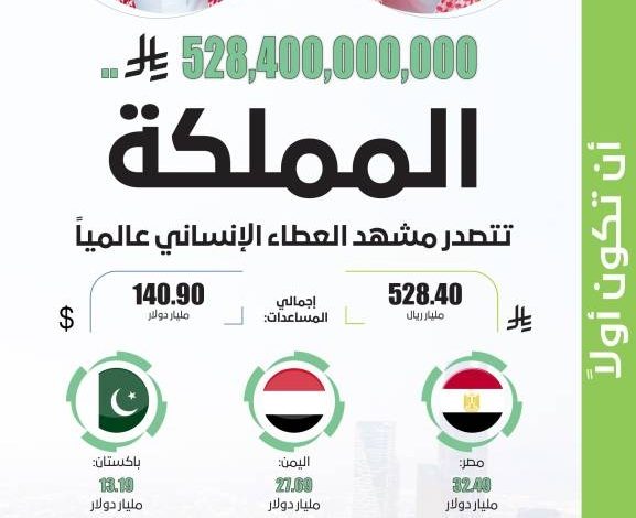 528.40 مليار ريال.. المملكة تتصدر مشهد العطاء الإنساني عالمياً
