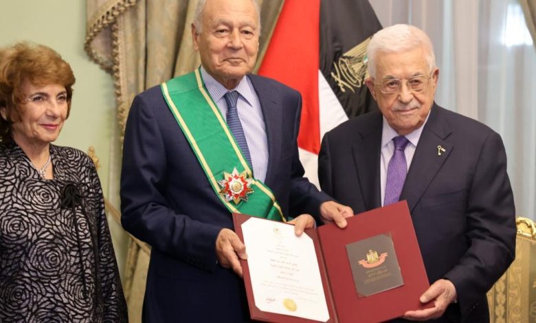 الرئيس عباس يقلد أحمد أبو الغيط الوشاح الأكبر من وسام دولة فلسطين