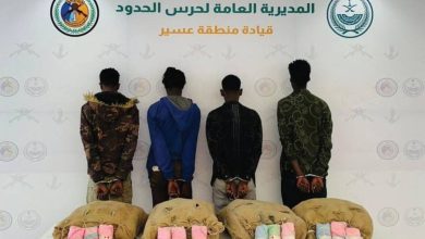 القبض على 4 مخالفين لنظام أمن الحدود لتهريبهم 80 كيلوغراماً من القات المخدر بعسير