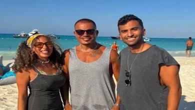 صورة- عمرو دياب مع منة القيعي وزوجها على البحر