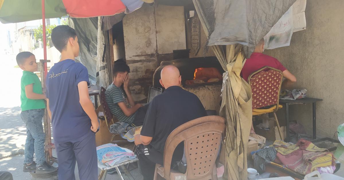 الأطفال يراقبون عملية الخَبز بفضول، وكأنها طقس من طقوس الصمود. وفي قلب العتمة، يظل رغيف الطين علامة على التحدي والتمسك بالحياة.