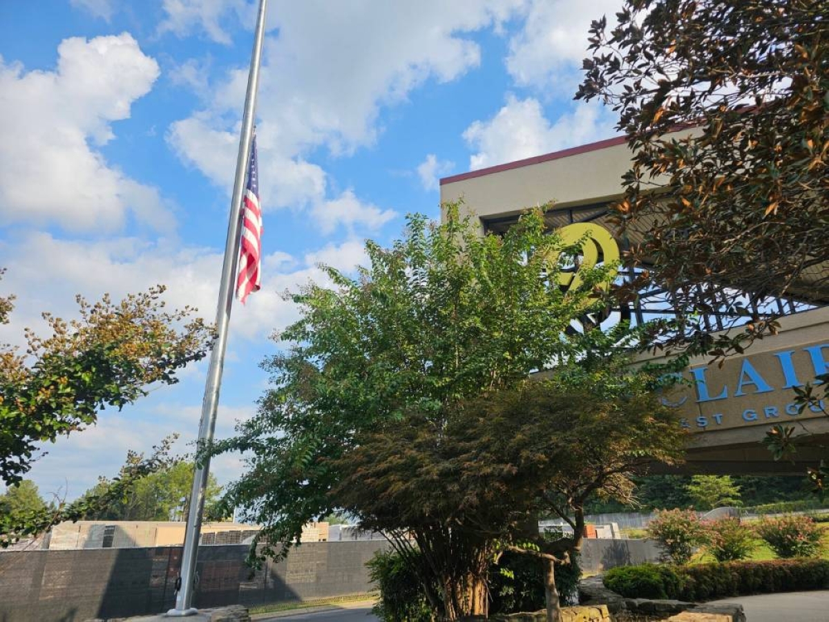 نُكّست أعلام 32 دولة في حلف الأطلسي أمام مبنى المقر الرئيسي في بروكسل، مرفوعة نصف ارتفاعها؛ تعبيراً عن الحداد على 2977 ضحية جراء الهجمات الإرهابية التي هزت الولايات المتحدة قبل ربع قرن.