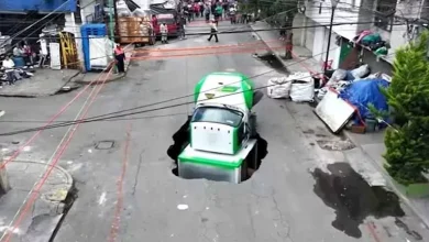 تحت أنظار المارة.. الأرض تبتلع شاحنة ضخمة في المكسيك (فيديو)