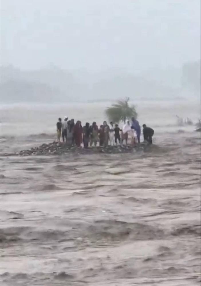 وأظهر مقطع فيديو صادم انتشر على وسائل التواصل الاجتماعي حوالى 12 شخصًا، بينهم نساء وأطفال، عالقين على جزيرة صغيرة مرتفعة وسط النهر، وهم يصرخون طلبًا للنجدة بينما كانت المياه تتدفق بسرعة حولهم.