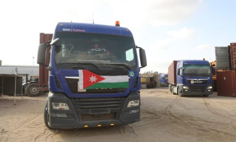 الأردن يرسل 92 شاحنة مساعدات الى غزة
