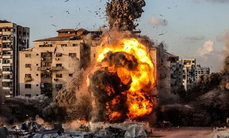 بالفيديو: تدمير برج مكة غربي مدينة غزة