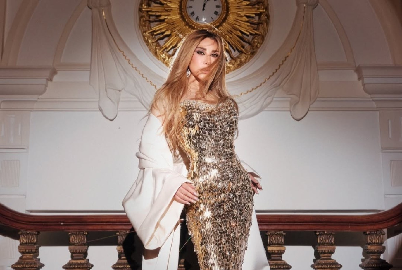 أحلام بإطلالة أخَّاذة بالفستان الذهبي