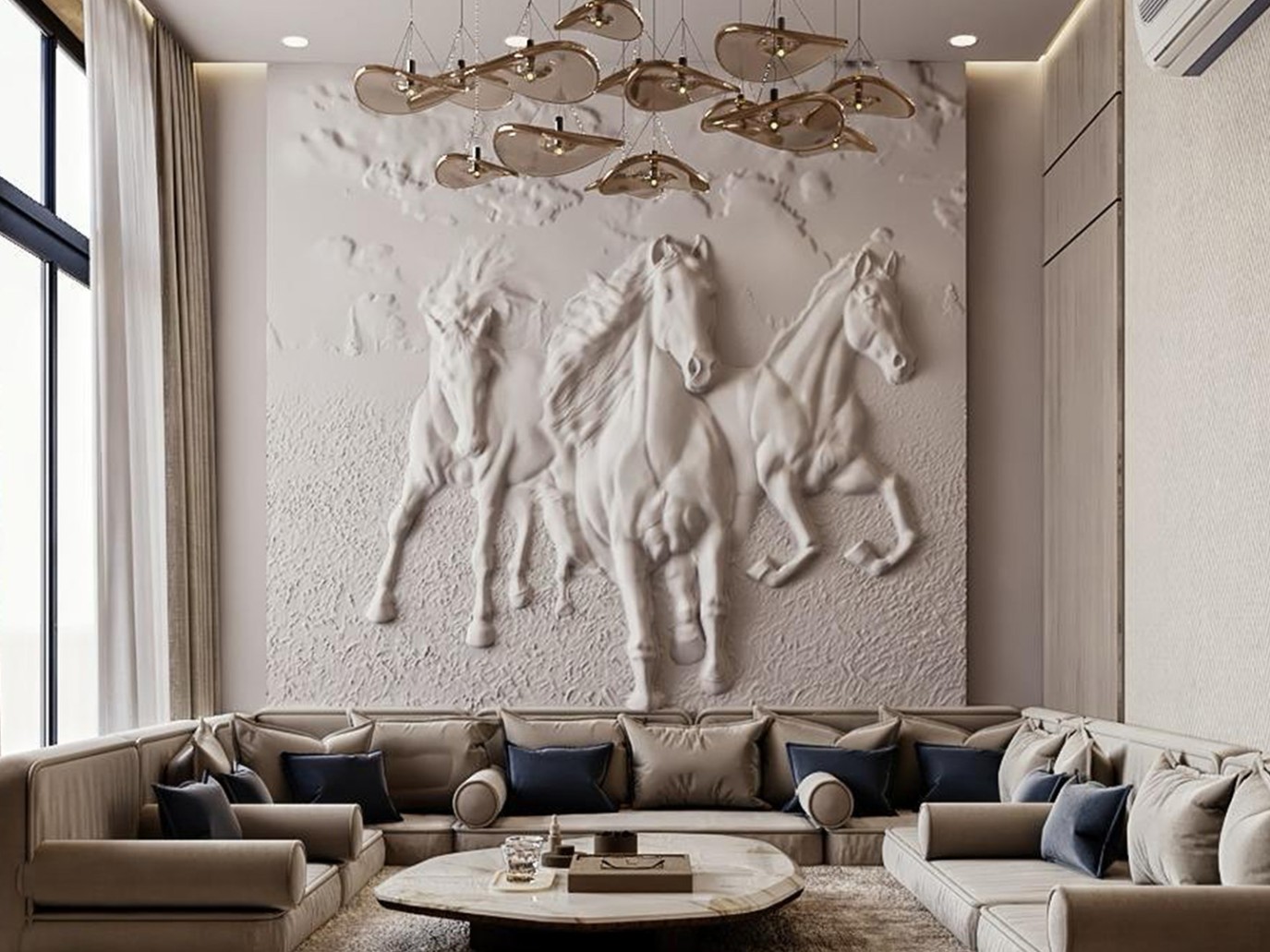 وعن طبيعة تقنيات الإضاءة المستخدمة في إبراز الطابع العربي المعاصر في التصميم، تقول: “أختار مصادر إضاءة معاصرة بروح شرقية واضحة، تحمل نقوشاً وزخارف ناعمة بحيث تعكس النقوش ظلالاً على الجدران والفرش، وتخلق حركة ضوئية ناعمة تُضيف عمقاً ودفئاً للمكان، فهذه الطريقة تمنح الجلسة شخصية خاصة في المساء، حيث تتحول الإضاءة إلى عنصر زخرفي حيّ يتفاعل مع بقية التفاصيل”. وتزيد: “أحرص أن تكون هذه النقوش مبسطةً ومعاصرةً، كي لا تبدو الإضاءة تقليدية، بل تحمل طابعاً شرقياً بتفسير معاصر ينسجم مع الأثاث المعاصر والألوان الجريئة التي أفضّلها. بالنسبة لي، هذه التفاصيل الصغيرة هي التي تمنح التصميم روحه وفرادته، إضافة إلى إضاءة دافئة خافتة في الأسقف أو خلف الجدران لإبراز التفاصيل”.
