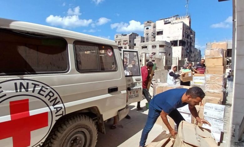 بالصور: الصليب الأحمر يقدم شحنة طبية لمجمع الشفاء بغزة