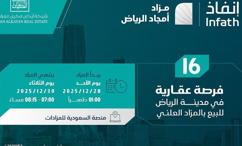 16 فرصة عقارية بمزاد أمجاد الرياض