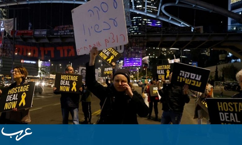 متظاهرون ضد حكومة نتنياهو يغلقون شارعا في تل أبيب واحتجاجات في مواقع أخرى