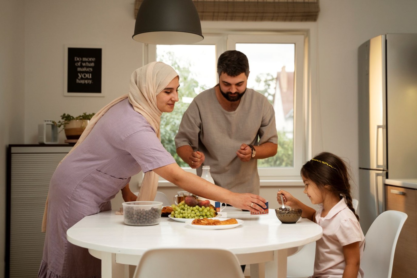 - قومي بتجهيز بعض الأصناف بمساعدة طفلتك واحفظيها في المبرد لتوفير وقت الوقوف في المطبخ، وذلك قبل بداية الشهر الكريم بأيام مثل حفظ الخضروات الورقية كالبقدونس والنعناع، ويمكن إزالة عروقها والاحتفاظ بالأوراق لسهولة فرمها عند إعداد السلطة والتبولة على سبيل المثال، ولذلك من الضروري تجهيز مثل هذه الأشياء مع الحرص على حث أطفالك على مساعدتك في المطبخ خلال نهار رمضان، وخاصة ابنتك؛ حيث إن فوائد دخول ابنتك الصغيرة إلى المطبخ في رمضان كثيرة ومهمة ومن بينها شعورها بدورها وسعادة الأب بوقوف ابنته معك وتعليمها مبادئ الطبخ الأولية، فيما يقف معك الأطفال الذكور بحيث يساعدونك عند إعداد مائدة الإفطار قبل انطلاق أذان المغرب.
