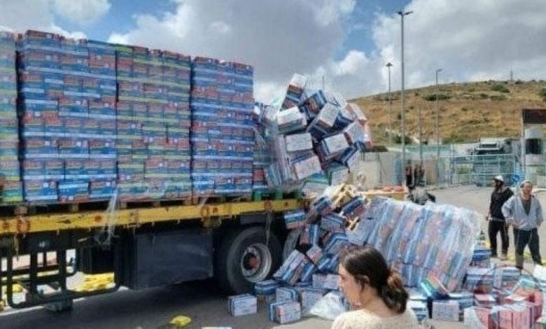 بالفيديو: إسرائيليون يهاجمون شاحنات مساعدات كانت في طريقها الى غزة