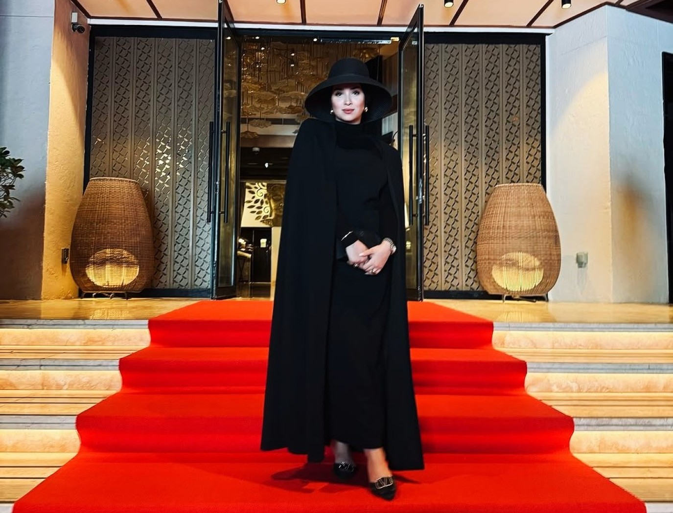 نورا الخولي تتألق بالفستان المطرز بالذهبي