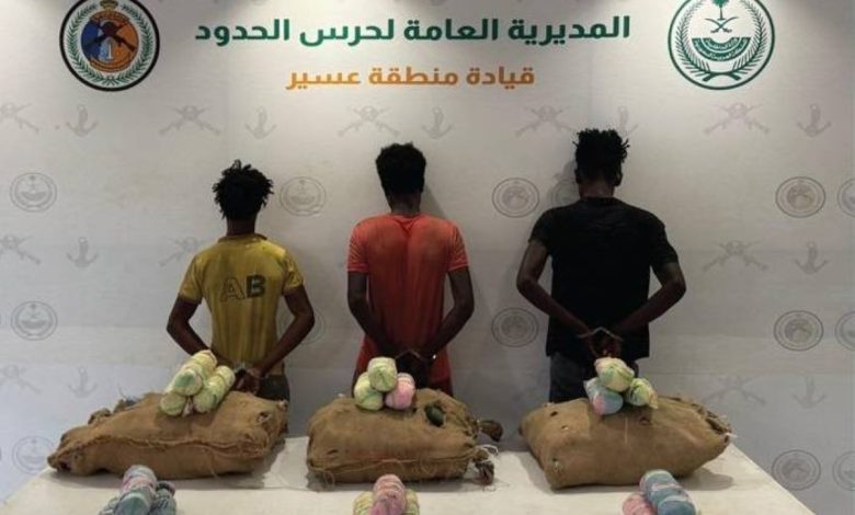«حرس الحدود» يقبض على 3 مخالفين لنظام أمن الحدود لتهريبهم 60 كيلوغراماً من القات بعسير