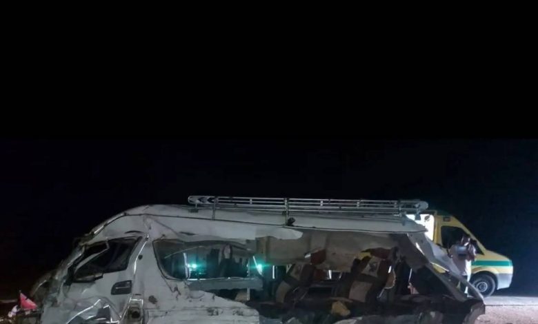 لقي 4 أشخاص مصرعهم وأصيب 11 آخرون في حادثة تصادم سيارة نقل ركاب بشاحنة على طريق سيوة مرسى مطروح.