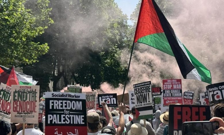 تظاهرة حاشدة في لندن للمطالبة بوقف العدوان على غزة وإيران
