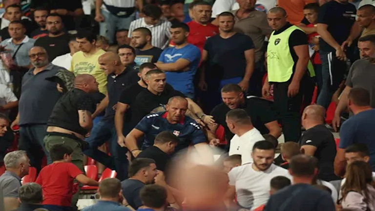 تدخل الشرطة وانتشال الأطفال.. عنف وشغب في مباراة صربيا وإنجلترا