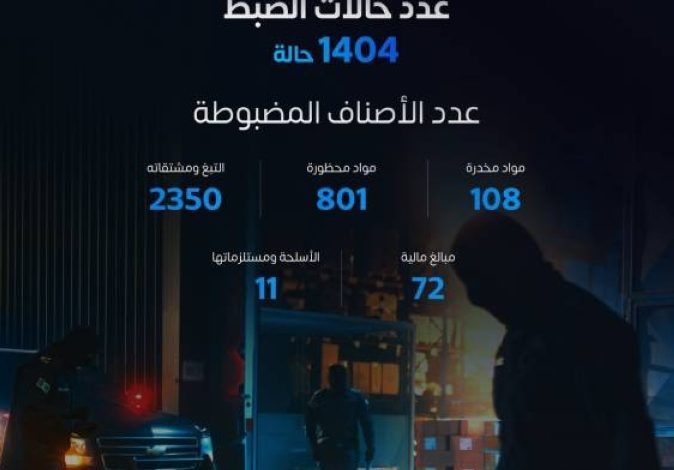 «الجمارك»: إحباط 1,404 محاولات تهريب خلال أسبوع