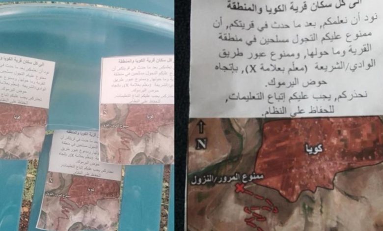إسرائيل تُلقي منشورات “تحذيرية” على بلدة كويّا جنوب سورية