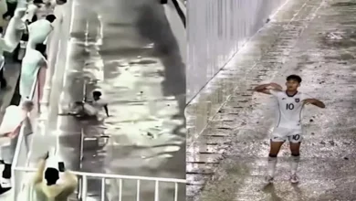 فيديو كوميدي.. لاعب كرة قدم يسقط في حفرة عميقة أثناء احتفاله بهدف