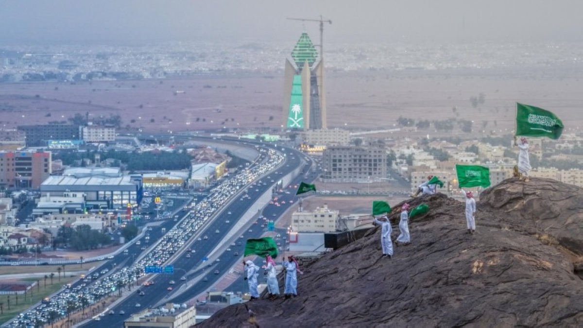 حائل ترسم لوحة العز والطموح والفزعة.. رايات خضراء تعانق قمم أجا في يوم الوطن