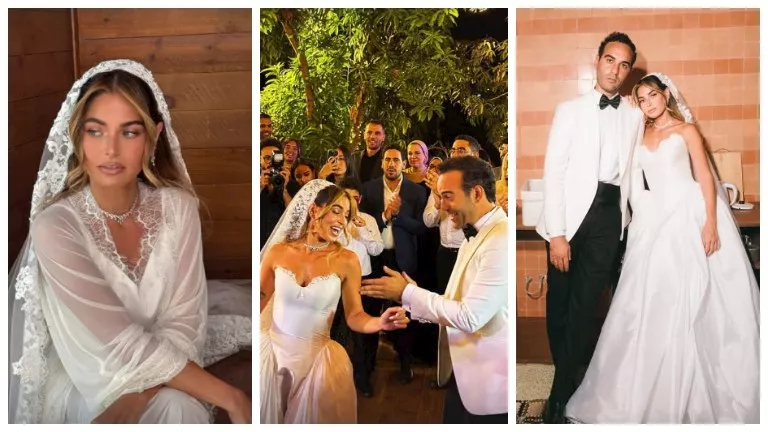 الصور الأولى من عقد قران وحفل زفاف هاجر السراج