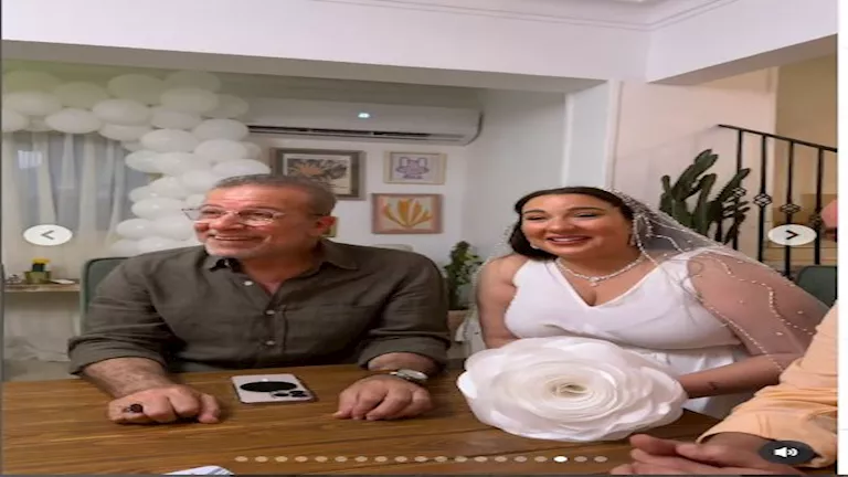 وتابعت “وحبيت إن الفرحة تبقى دي أول حاجة موجودة في البيت، حبيت إن أعمل ديكور بسيط، حبيت إن ألبس حاجة بسيطة، حبيت إن الصور تبقى متصورة من الموبايل عادي، صحابنا اللي مصورنا، إحنا اللي عملنا الديكور بتاع المكان بإيدينا، وإحنا اللي عاملين كل حاجة في البيت بإيدينا. فالإحساس ده حسسني إن كل حاجة إحنا بنعملها وفيه تفصيلة بتفكرنا بحاجة، وكل تنشنة وكل خناقة وكل حاجة في الدنيا كانت في الآخر وصلتنا للحاجة الحلوة اللي حصلت النهاردة”.