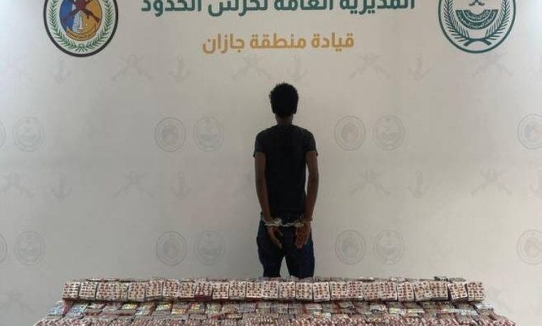 جازان: القبض على مخالف لتهريبه 64,800 قرص خاضع لتنظيم التداول الطبي