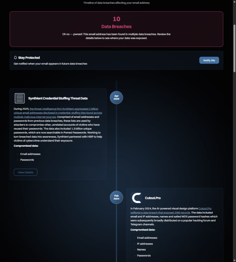تهدف الهجمات السيبرانية دائمًا إلى سرقة بيانات المستخدمين المخزنة في المنصات الكبرى. غالبًا ما تكون هذه البيانات ذات قيمة قليلة بالنسبة للقراصنة، لذلك يلجأون إلى بيعها عبر الإنترنت المظلم أو استخدامها في عمليات احتيالية. يمكن للمستخدمين التحقق مما إذا كانت بياناتهم قد تم تسريبها باستخدام مواقع مخصصة لهذا الغرض.